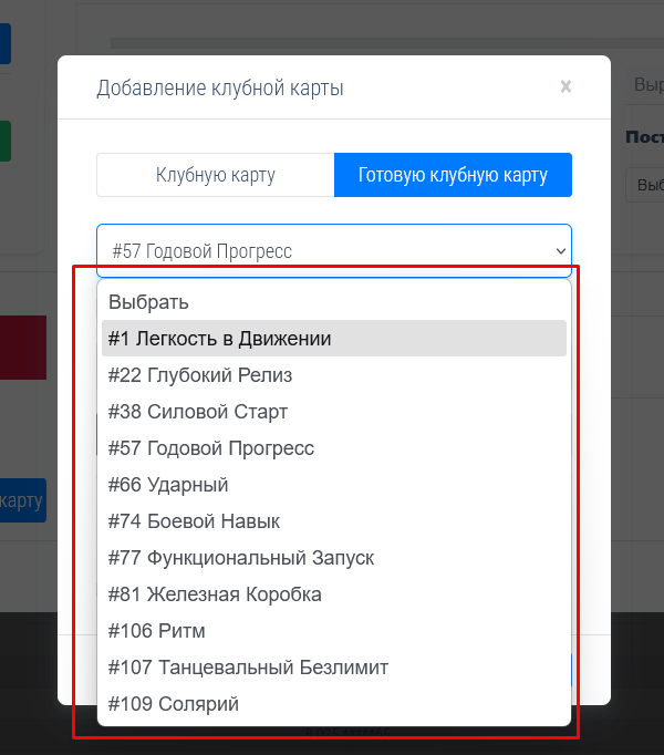Выберите многоразовую клубную карту. Если нет клубных карт значит вы не создали многоразовую клубную карту. Здесь описано как создать. Нажмите добавить.