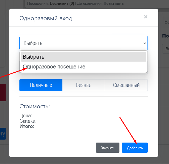 Обратите внимание что одноразовые клубные карты не добавляются клиенту, они сразу засчитывают вход.
