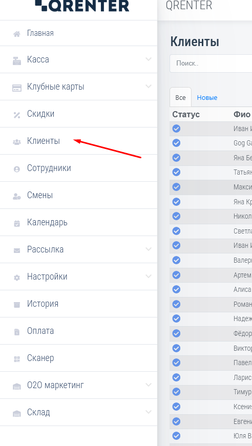 Нажмите на клиента