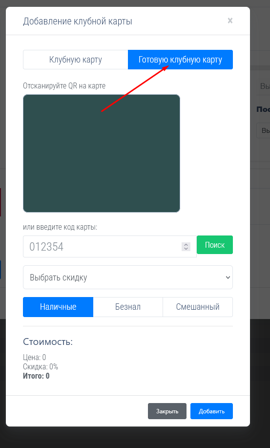 Первый способ с помощью QR кода самой клубной карты. У вас должна быть появится название клубной карты (базовой)