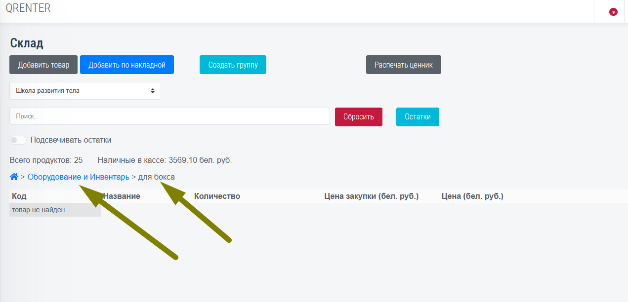 В списке товаров нажмите на название нужной папки, чтобы открыть её.