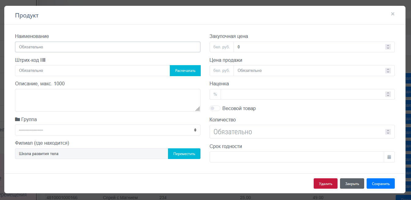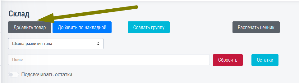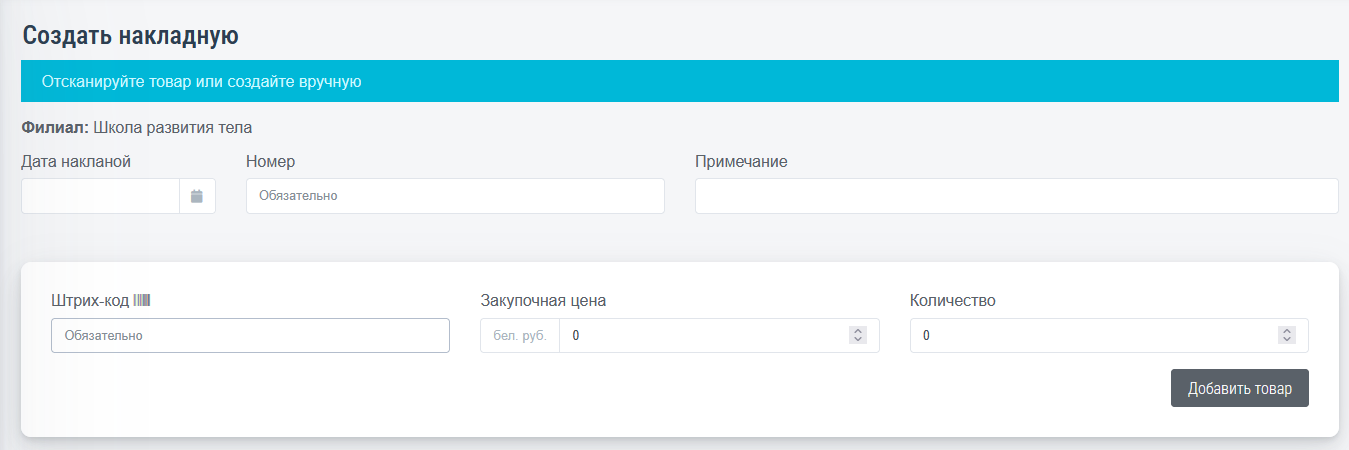 Способ Б (сканирование): Отсканируйте штрих-коды. Товары, уже существующие в системе, добавятся автоматически. Новые товары потребуется предварительно создать вручную (п. 1.1).