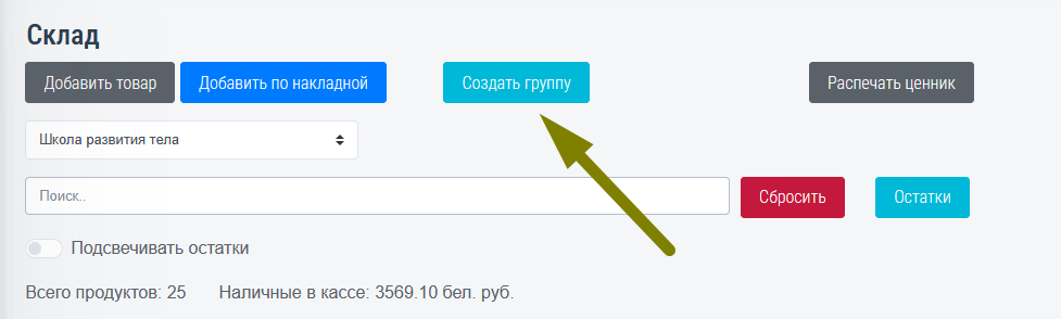 При добавлении товара из общего списка вручную выберите нужную группу в соответствующем выпадающем списке.