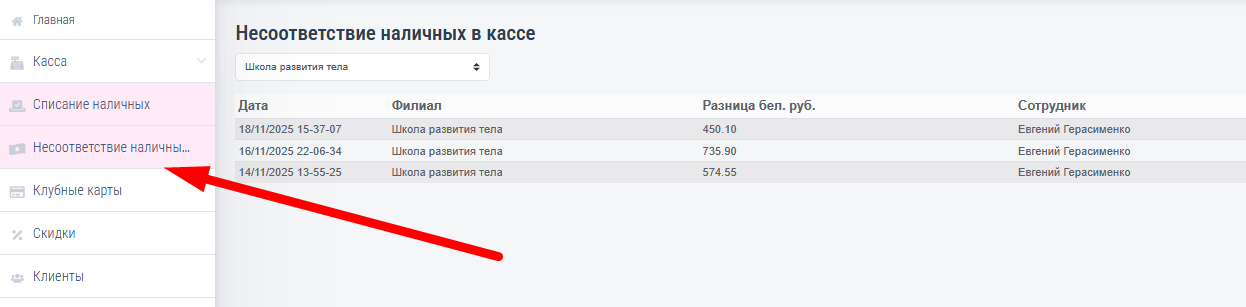 Раздел 3: Несоответствие наличных в кассе