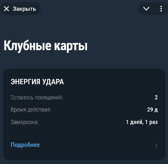 При нажатии «Подробнее» на абонементе открывается детальная карточка: