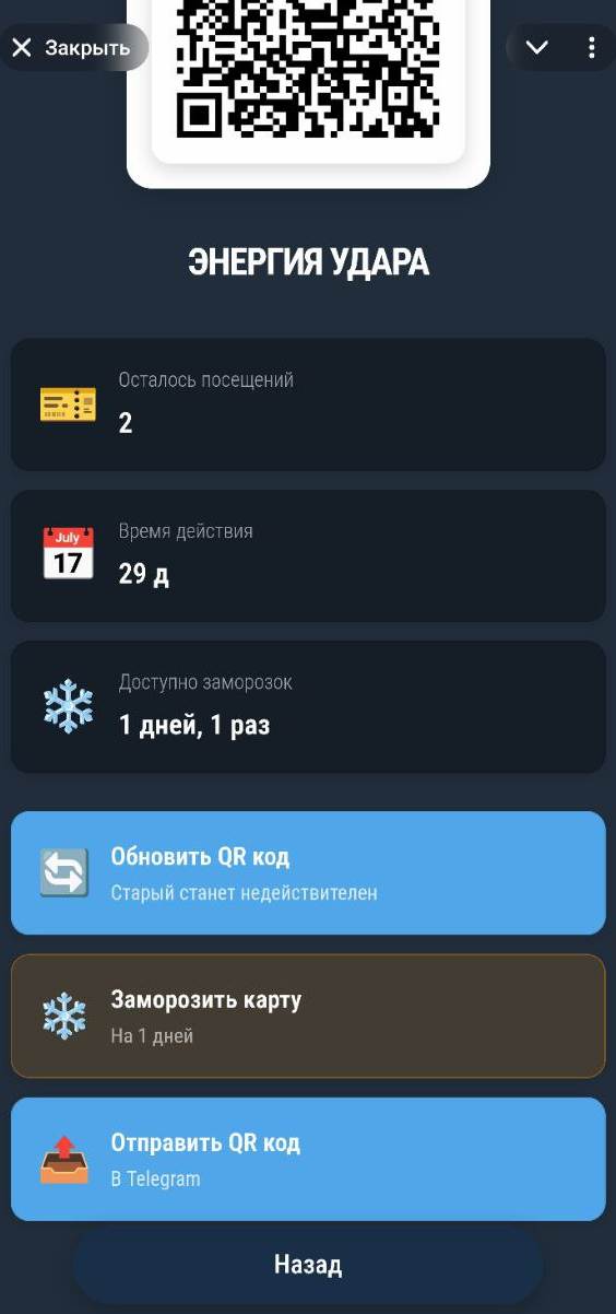«Обновить QR-код» — если клиент боится, что код украли (старый становится недействительным)