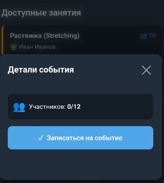 Что может сделать клиент: Посмотреть время, тренера, записаться в один клик.