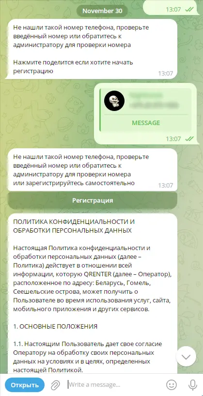 Клиенты сами могут регистрироваться в системе самостоятельно через бота за 30 секунд. Они сами вводят свои данные - имя, телефон, дату рождения.